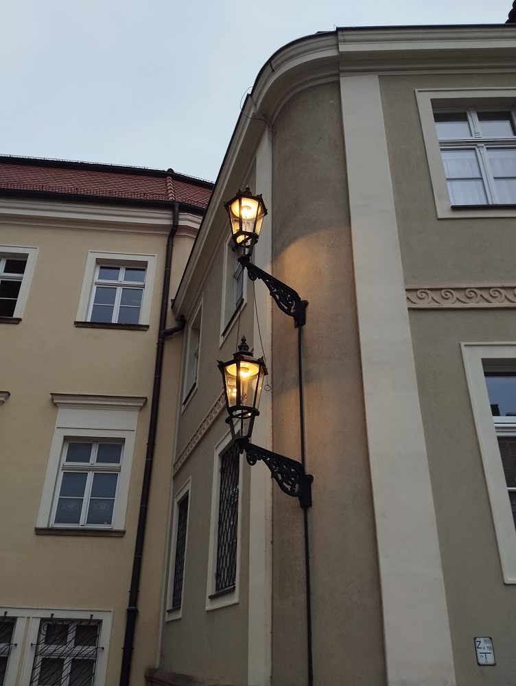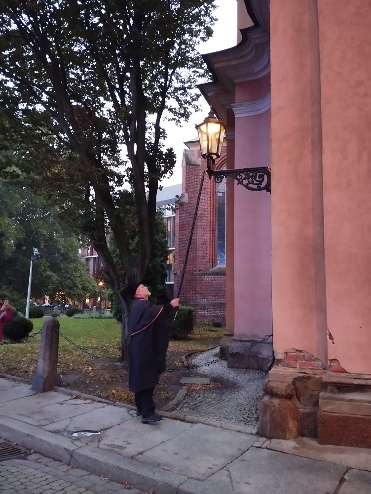 Gasbeleuchtung auf der Dominsel (poln.: Ostrów Tumski) bzw. auch der Sandinsel, 103 Leuchten an Wandarmen bzw. auf Gusssäulen im Viertel rund um den Johannesdom bzw. die Sandkirche. Die gesamte Dominsel wird nur mit Gas beleuchtet, keine elektrische Straßenlaternen vorhanden.
