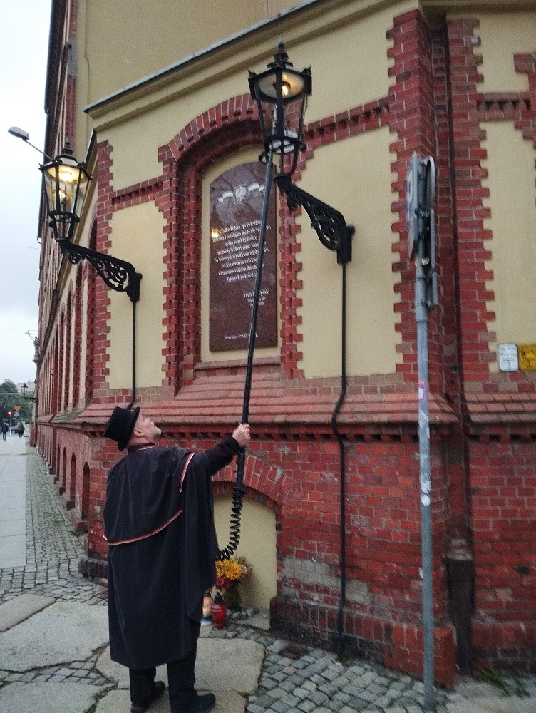 https://www.wroclawguide.com/de/breslau-sehenswuerdigkeiten/ Hier unter 6. stehen die Uhrzeiten vom Laternenanzünder.
