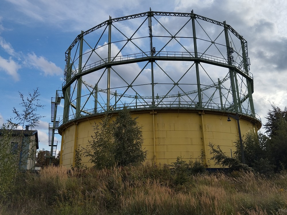 Bis etwa 2017 stand noch ein umhüllter Gasbehälter in der Nähe, wurde aber dann abgerissen.